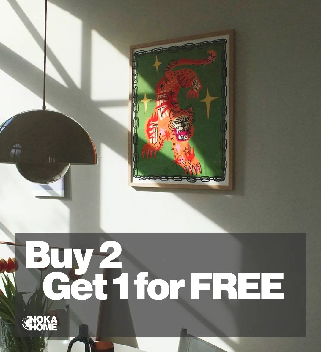 Just add any 3 posters you love to your cart and the discount will be applied automatically at checkout - the poster with the lowest price will become FREE.